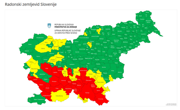 Radonski zemljevid Slovenije prikazuje območja z večjim tveganjem, predvsem v jugozahodnem delu države. Med občinami z več radona (označene rdeče) so na primer Bloke, Cerknica, Idrija, Postojna, Sežana, Kočevje in Vrhnika. Na dodatnih območjih (označenih rumeno), kot so Bohinj, Grosuplje, Nova Gorica in Novo mesto, se izvajajo dodatne meritve. Ti podatki temeljijo na dosedanjih meritvah in geološki sestavi tal.
